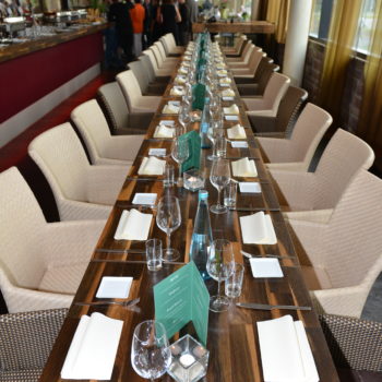 Auf 120 Quadratmetern können Sie entscheiden wo genau Ihr Event stattfindet. Das Aurum eignet sich wunderbar für kleinere Teams sowie für größere Gruppen. Es sind verschiedene Setups möglich, so zum Beispiel die Nutzung eines großen Konferenztisches, einer Empore für Vorträge, Gruppenecken in der Galerie oder auch eine überdachte Terrasse mit 80 Sitzplätzen beispielsweise für eine Firmenfeier mit BBQ im Sommer. Die Lounge Area auf der Dachterrasse kann für Pausen und anregende Gespräche mit Kunden und Mitarbeitern genutzt werden. Je nach Event werden ganz individuelle Angebote erstellt. Somit finden je nach Art der Veranstaltung bis zu 200 Gäste im Aurum Platz.